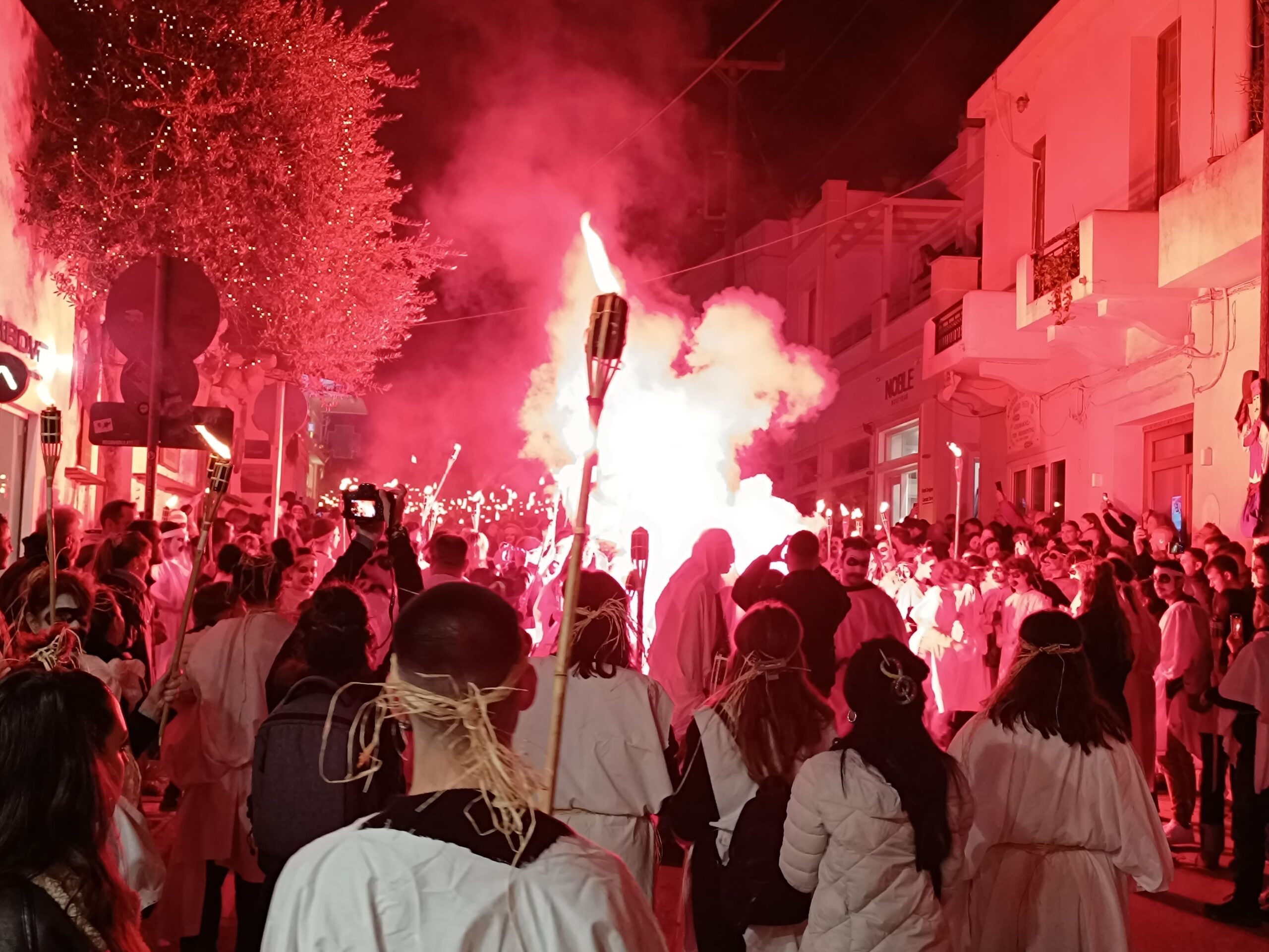 Φαντασμαγορικά δρώμενα, διονυσιακά παιχνίδια και τελετουργίες μύησης, εμπνευσμένες από τους αρχαίους θεούς του Ολύμπου, τον Απόλλωνα και τον Διόνυσο, ζωντανεύουν στις αποκριάτικες νύχτες της Νάξου. Σάτυροι και μαινάδες ξεπηδούν από τους μύθους, αρχέγονα βακχικά έθιμα αναβιώνουν και εκστατικές λαμπαδηφορίες με φλόγες, ιαχές και ρυθμικούς ήχους κρουστών πλημμυρίζουν το νησί. Οι διονυσιακοί χοροί, το άφθονο ναξιώτικο κρασί και η αίσθηση ελευθερίας ενώνονται με φόντο το απέραντο γαλάζιο του Αιγαίου, προσφέροντας μια εμπειρία που καθηλώνει όλες τις αισθήσεις.