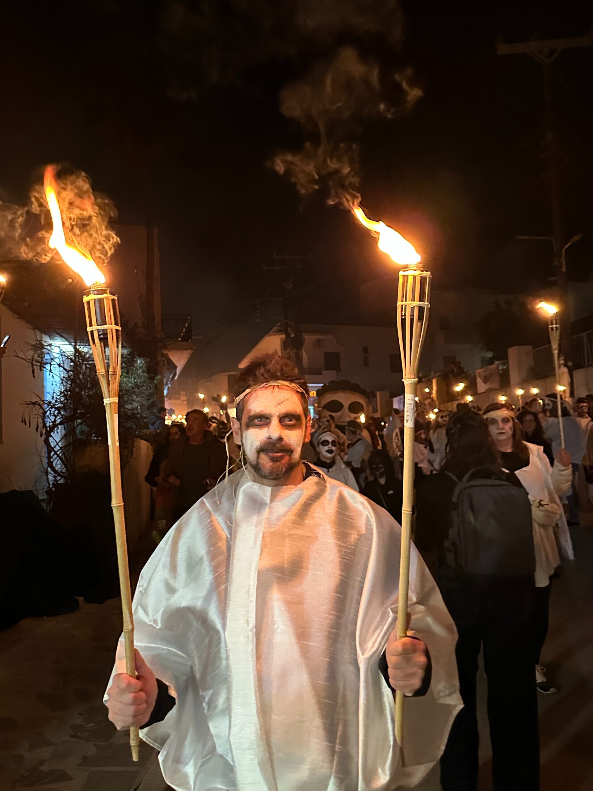 Υποδοχή στη Νάξο και πρώτη γνωριμία με το νησί. Περίπατος στο Κάστρο της Χώρα και επίσκεψη στην εμβληματική Πορτάρα ⛩️, με αφήγηση μύθων του Απόλλωνα και του Διονύσου. Βραδινό διονυσιακό δρώμενο με λαμπαδηφορία 🔥, μουσικές και ελεύθερο γλέντι.